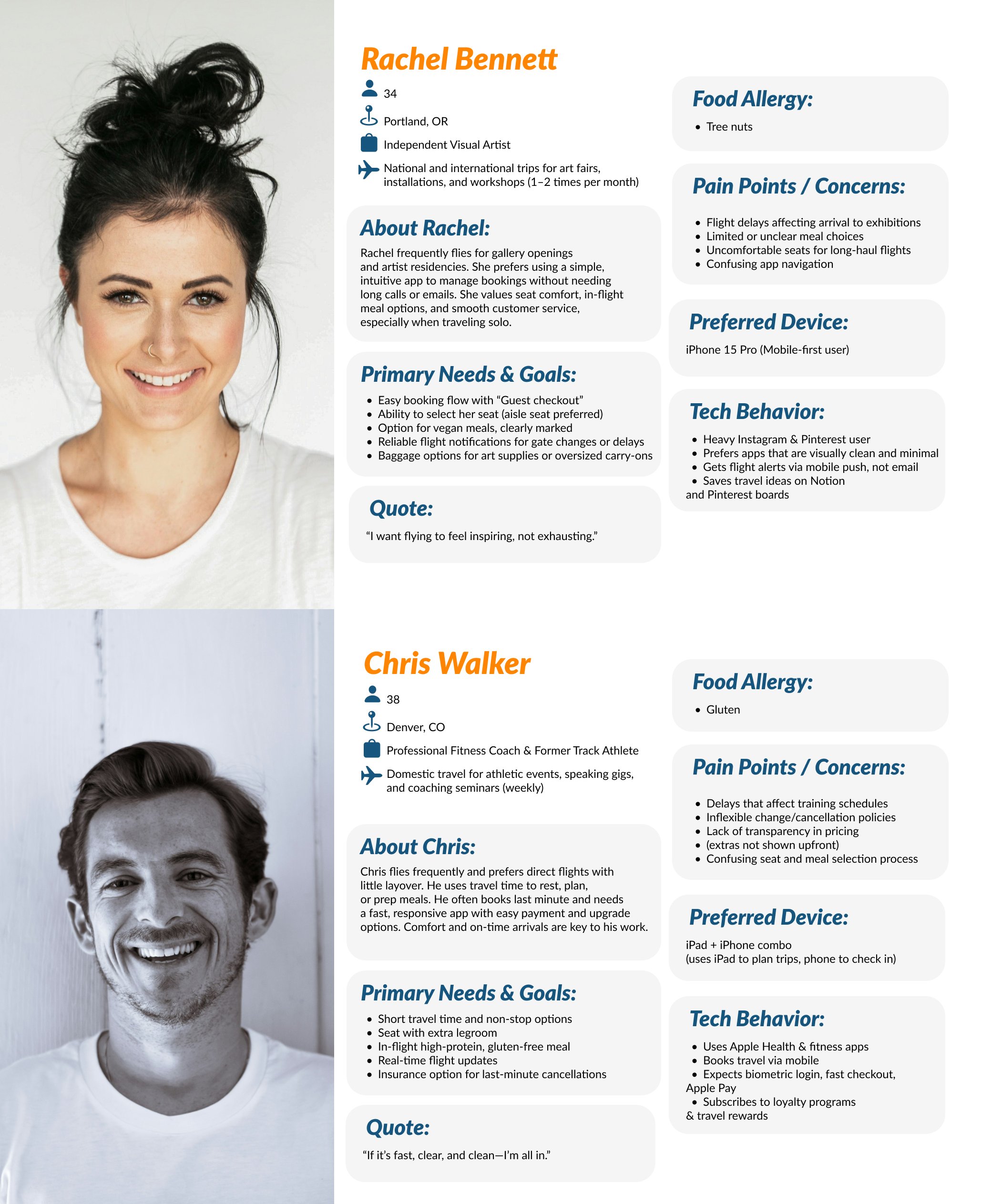 - Prioritized key actions: Search → Select Flight → Seat → Checkout.